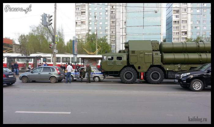 Stłuczka z udziałem radiowozu i wyrzutni międzykontynentalnych rakiet balistycznych:)